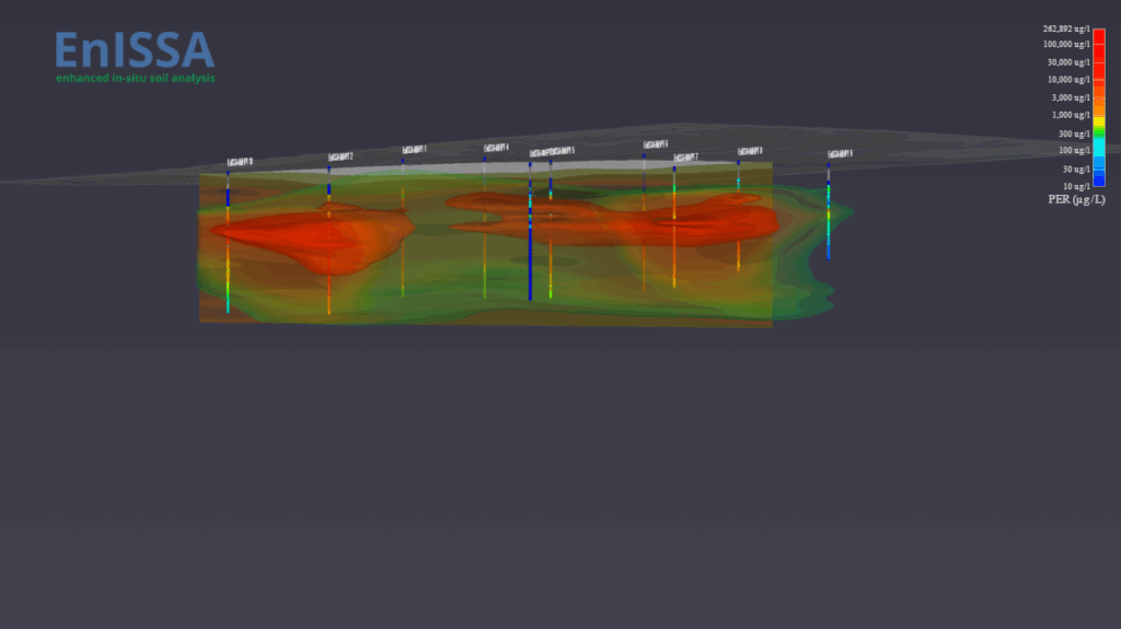 Diese Technik ermöglicht die Erstellung äußerst detaillierter vertikaler Profile der VOC-Konzentrationen, sowohl in den Bodenschichten als auch im Grundwasser. So konnten wir exakt bestimmen, in welchen Tiefen Substanzen wie Perchlorethylen, Trichlorethylen, cis-1,2-Dichlorethylen und Vinylchlorid vorhanden waren.