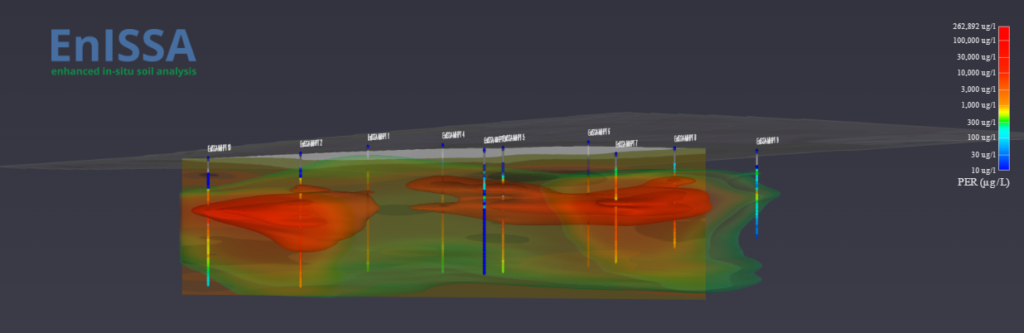 Die erste Untersuchung lieferte nur ein allgemeines Bild der Kontamination. Daher führte EnISSA eine High-Resolution Site Characterization (HRSC) mit MIP-GC/MS-Messungen durch.